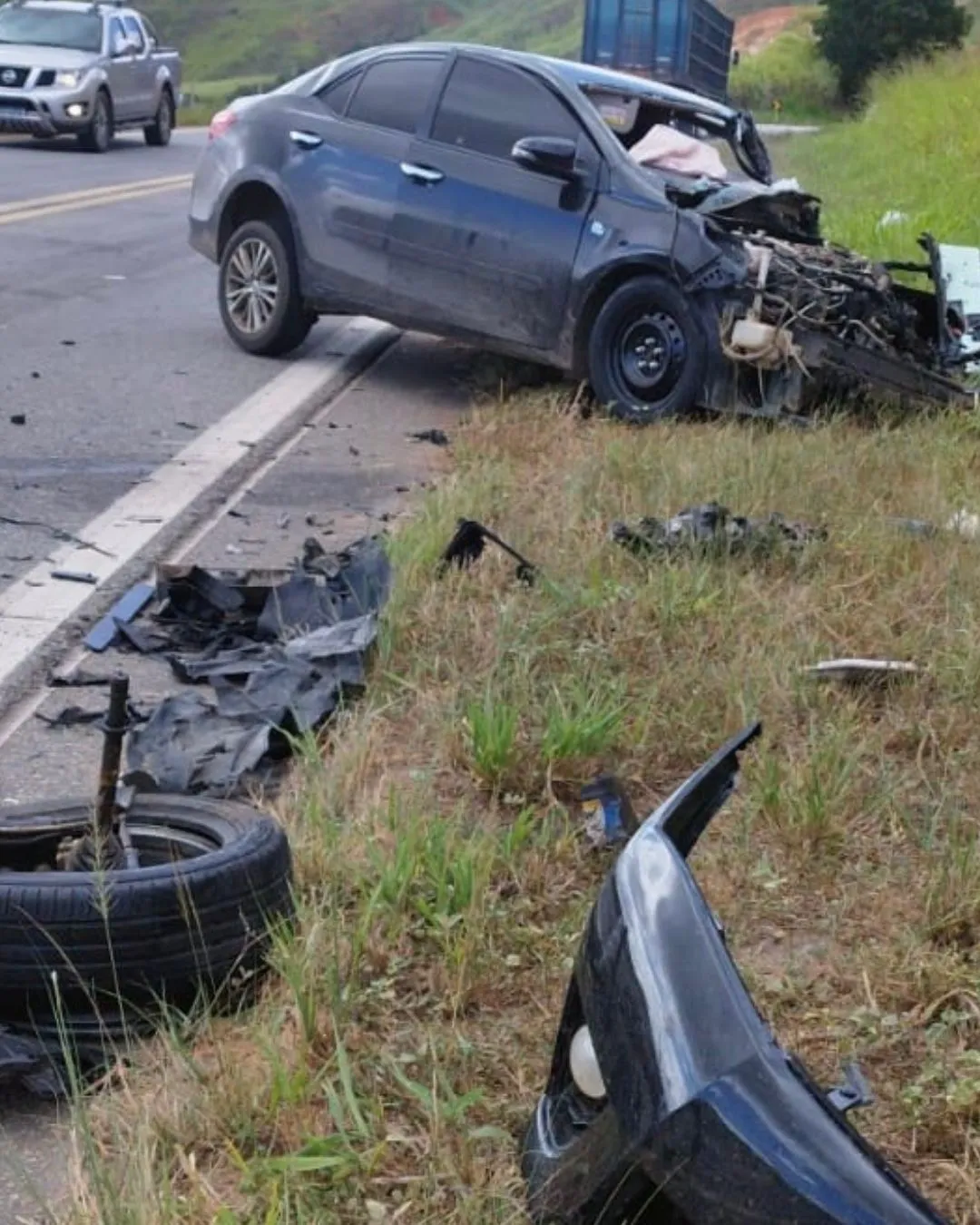 A remoção dos veículos do local foi providenciada pelo condutor do caminhão e pelos familiares do condutor do Toyota Corolla.