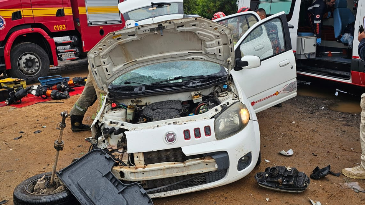 Já no Fiat Uno, estavam duas ocupantes. A passageira do banco da frente ficou presa às ferragens e foi resgatada pelos bombeiros em estado gravíssimo. Durante o atendimento do SAMU, ela entrou em parada cardiorrespiratória.