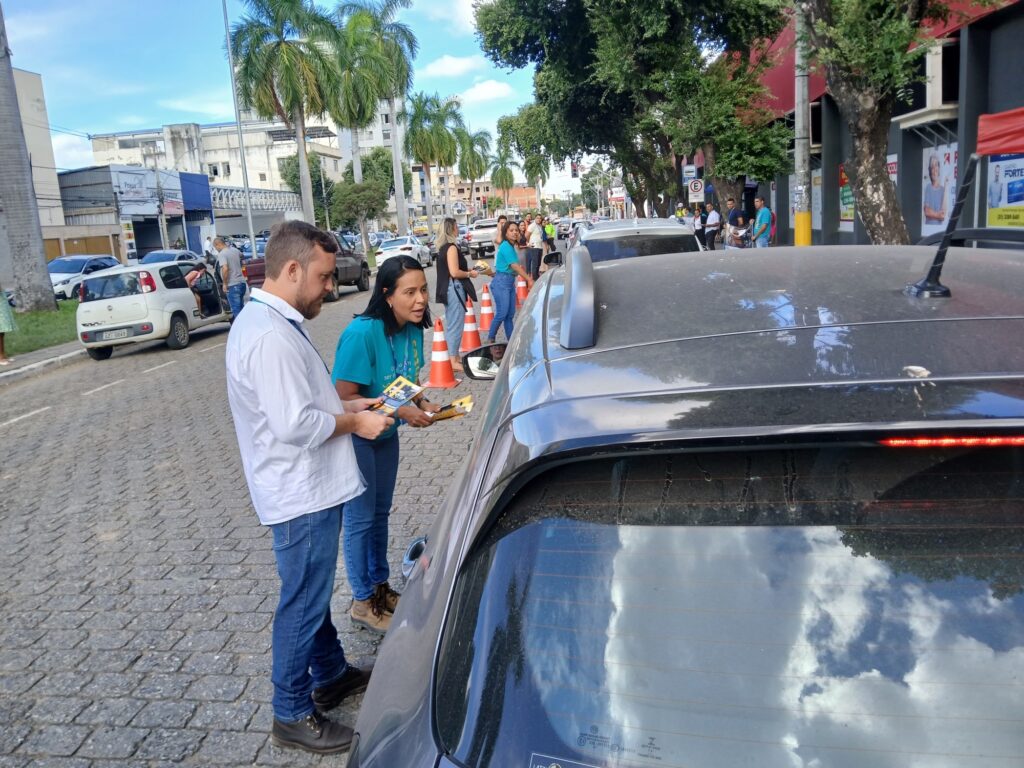 Durante a blitz, foram distribuídos materiais informativos e transmitidas orientações sobre comportamentos seguros, como o respeito à sinalização, o uso do cinto de segurança e a atenção redobrada ao volante.