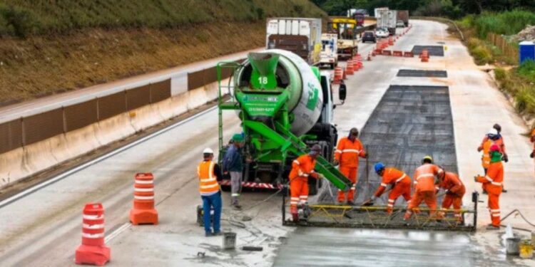 Em Caeté, na Região Metropolitana de Belo Horizonte, as intervenções acontecem entre os quilômetros 412 e 422, com serviços de demolição e recomposição de placas de concreto.