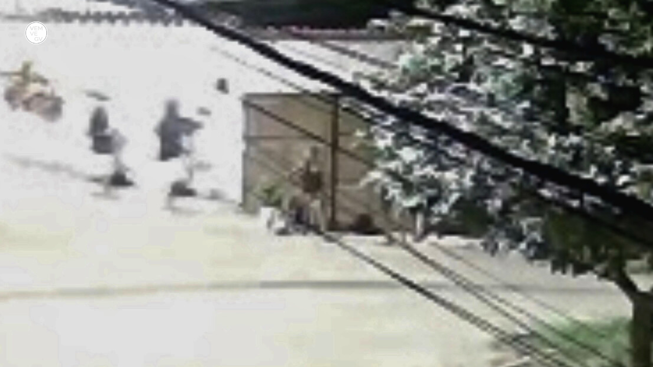 Após o crime, os atiradores fugiram correndo. Uma terceira pessoa aparece nas imagens, assustada, também correndo do local.