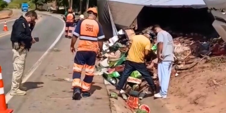 De acordo com a Polícia Rodoviária Federal (PRF), o tombamento ocorreu por volta das 7h.