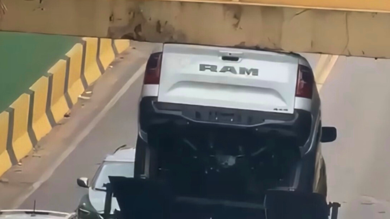 De acordo com testemunhas, o motorista tentava atravessar o viaduto quando outros condutores começaram a buzinar, alertando sobre o risco de colisão com a estrutura, já que a altura de um dos veículos transportados ultrapassava o limite permitido.
