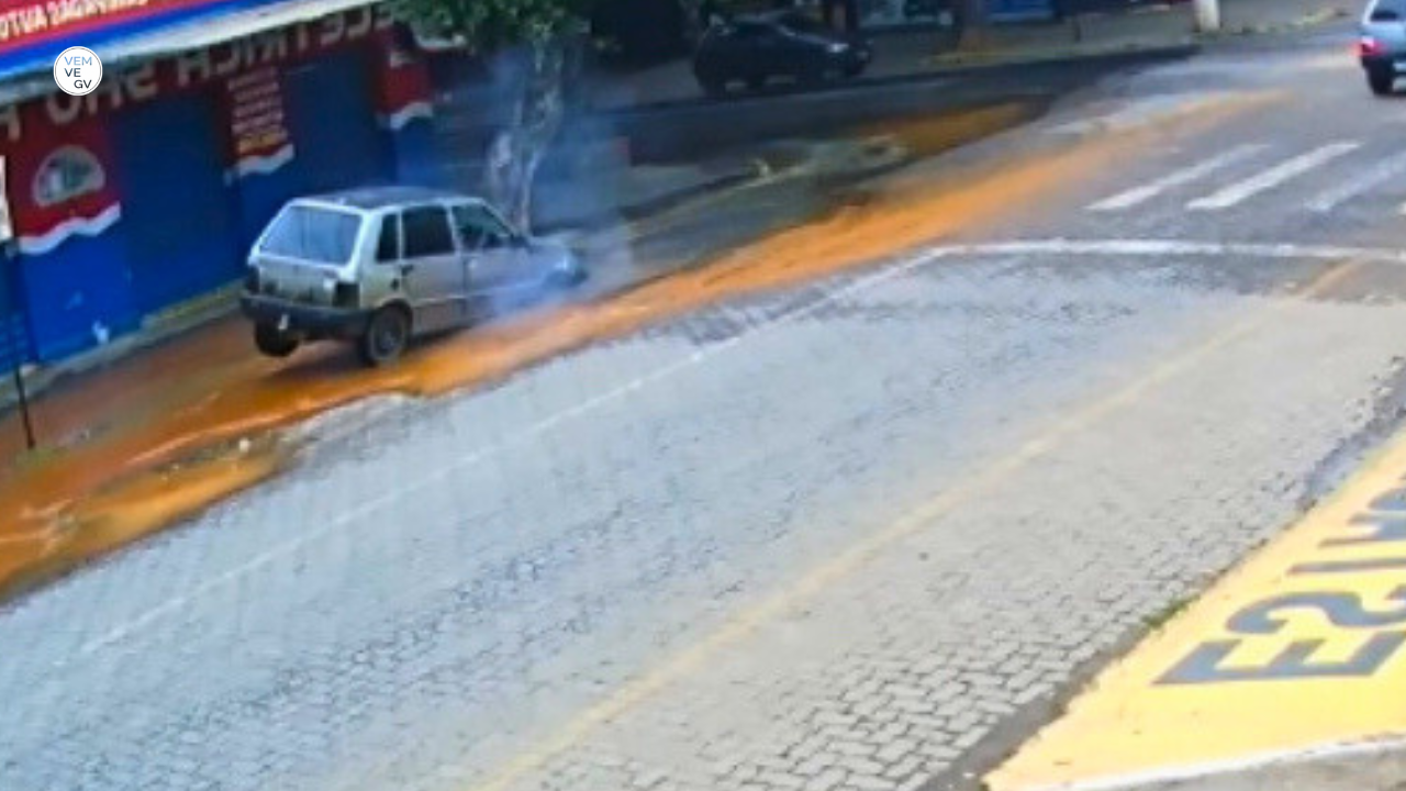 Um vazamento em uma rede de água rompeu a pavimentação da rua Marechal Deodoro esquina com a Castro Alves, no Centro de Valadares, e fez com que um carro afundasse no local nesta segunda-feira ( 27/05 ).