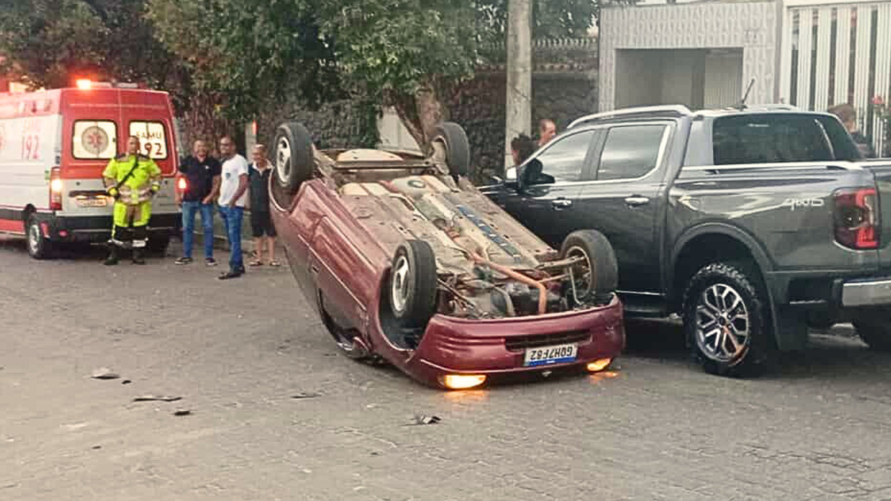 Um automóvel capotou na tarde deste sábado ( 25/10 ), na rua Gonçalo Costa, no bairro Nossa Senhora das Graças, em Governador Valadares.