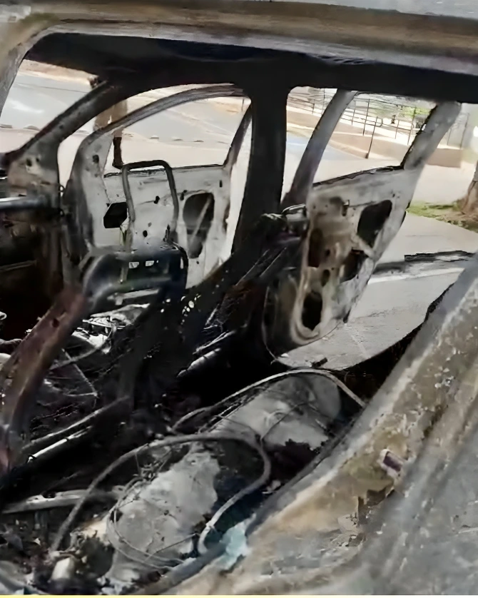 Na madrugada desta sexta-feira ( 08/11 ), um veículo pegou fogo após colidir com uma placa de sinalização e uma árvore no cruzamento das ruas Peçanha e Sá Carvalho, no centro de Governador Valadares.