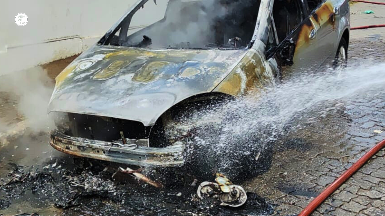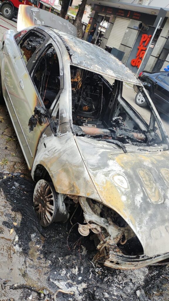 Um automóvel foi completamente consumido pelas chamas na tarde desta sexta-feira ( 11/07 ), na região central da Governador Valadares.
