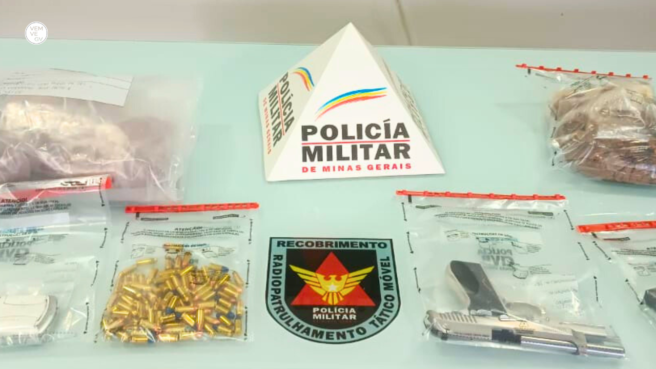 A Polícia Militar apreendeu uma pistola, dezenas de munições e mais de três quilos de pedras de fel bovino – avaliadas em cerca de R$ 900 mil – durante uma ação neste sábado ( 02/08 ), em Governador Valadares.