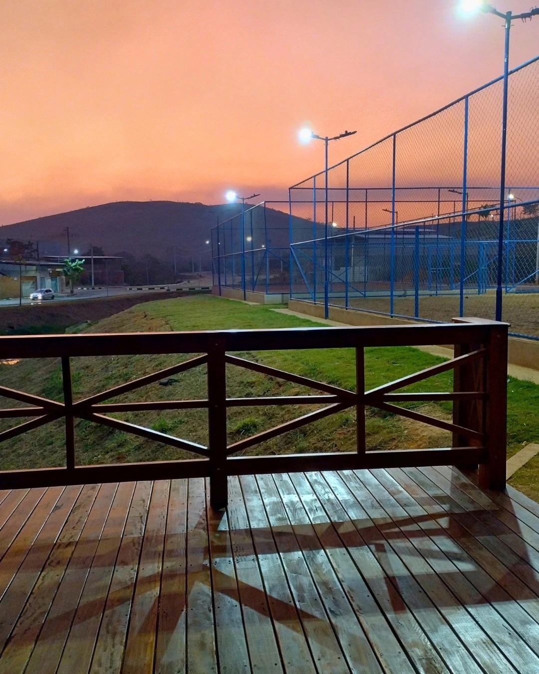 O complexo oferece duas quadras de areia, ciclofaixa, pista de caminhada, área gramada para piqueniques e um deck com vista privilegiada da Lagoa do Figueira.