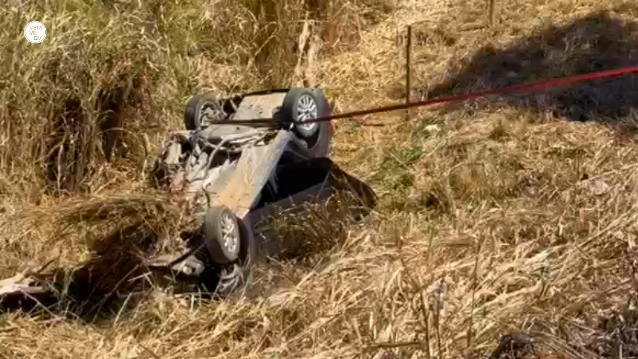 De acordo com informações, o condutor de um Toyota Etios perdeu o controle da direção enquanto trafegava no sentido Divino das Laranjeiras. O veículo capotou e saiu da pista.