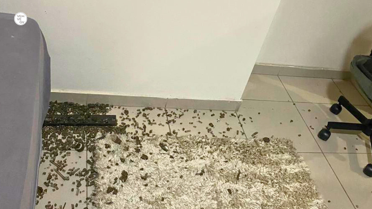 Segundo relato à PM, ao verificar o que havia acontecido, ela percebeu que a janela do quarto estava quebrada e havia um buraco na cortina e no teto. Assustada, saiu rapidamente do cômodo e pediu ajuda.