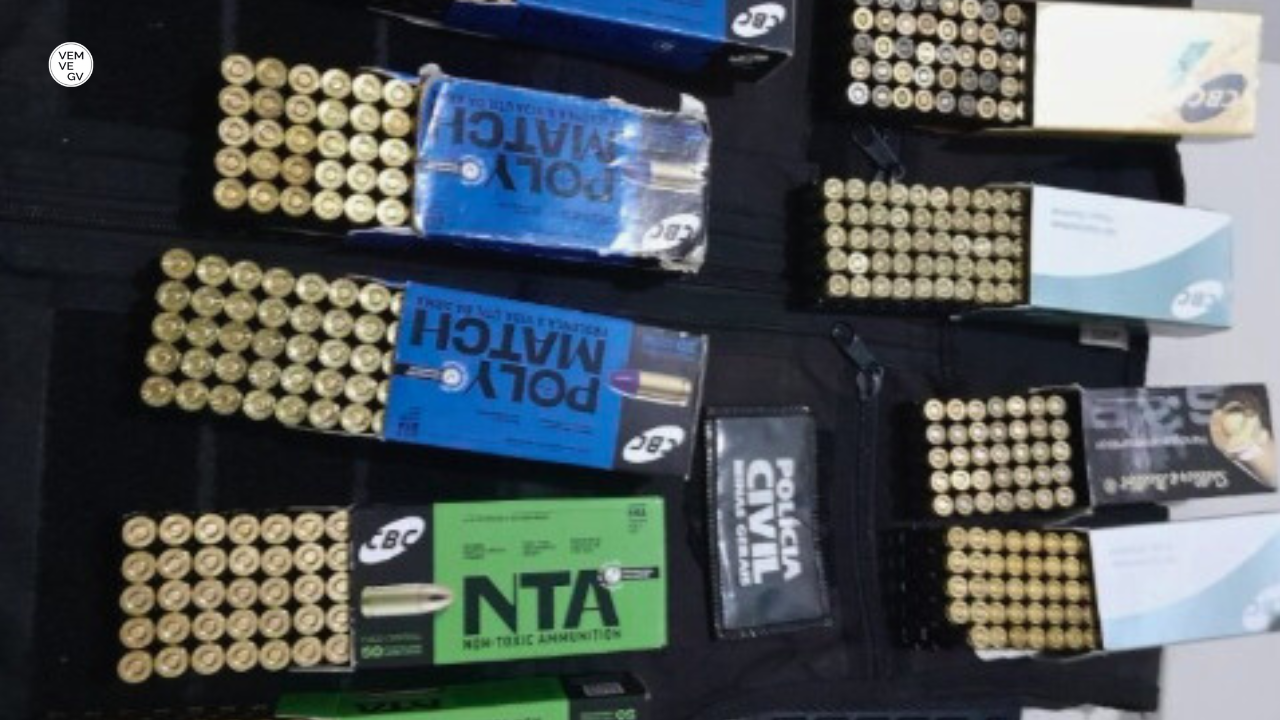 Durante o cumprimento da ordem judicial, a equipe policial apreendeu 294 munições de calibre restrito ( .9mm ) e 135 munições de calibre permitido ( .38mm ).