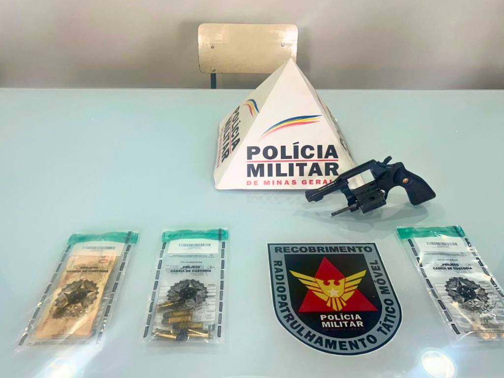 No local, a polícia apreendeu um revólver calibre .38 com seis munições intactas, quatro pedras de crack e R$ 147 em dinheiro.