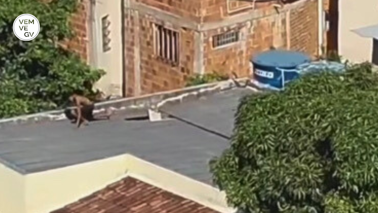 Ao notar a presença da polícia, ele fugiu correndo por várias ruas, subiu uma escadaria e entrou em um lote vago, onde iniciou uma fuga pelos telhados das residências.