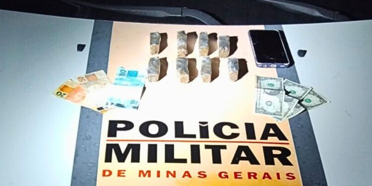 Na busca veicular, os militares localizaram oito tabletes de maconha, além de R$ 170 em dinheiro e três dólares americanos.