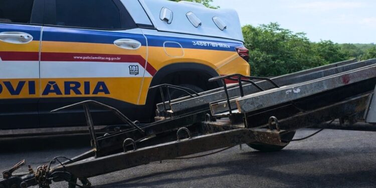 Durante a abordagem, os militares constataram que o reboque acoplado ao veículo apresentava o lacre da placa rompido e não possuía número de chassi visível.