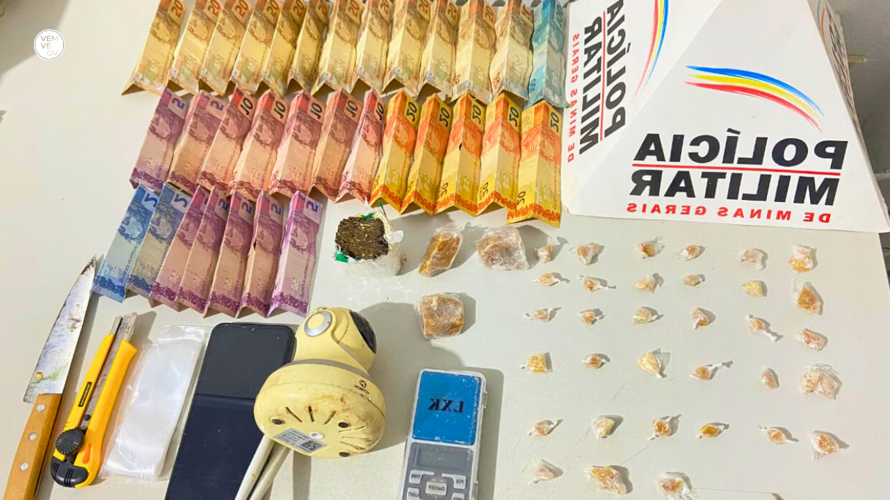 Durante buscas na residência, os militares encontraram 33 pedras de crack prontas para venda, três pedras maiores da mesma substância, um tablete de maconha, além de uma balança de precisão, um aparelho celular, uma câmera de videomonitoramento e materiais usados para embalar a droga.