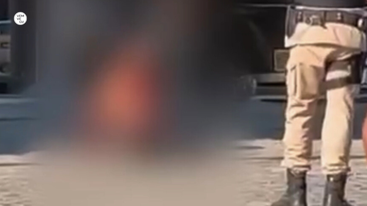 A Polícia Militar foi acionada e, ao chegar ao local, encontrou o homem coberto de sangue. Durante a tentativa de abordagem, o suspeito se exaltou ainda mais, danificou a viatura e foi contido com o uso de arma de choque ( Taser ). Com a chegada do reforço, ele foi baleado na perna e imobilizado.