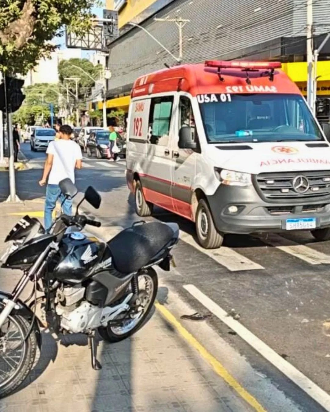 Ao perceber a proximidade de uma motocicleta, o idoso em vez de recuar, tomou a decisão de pular para a frente da moto.