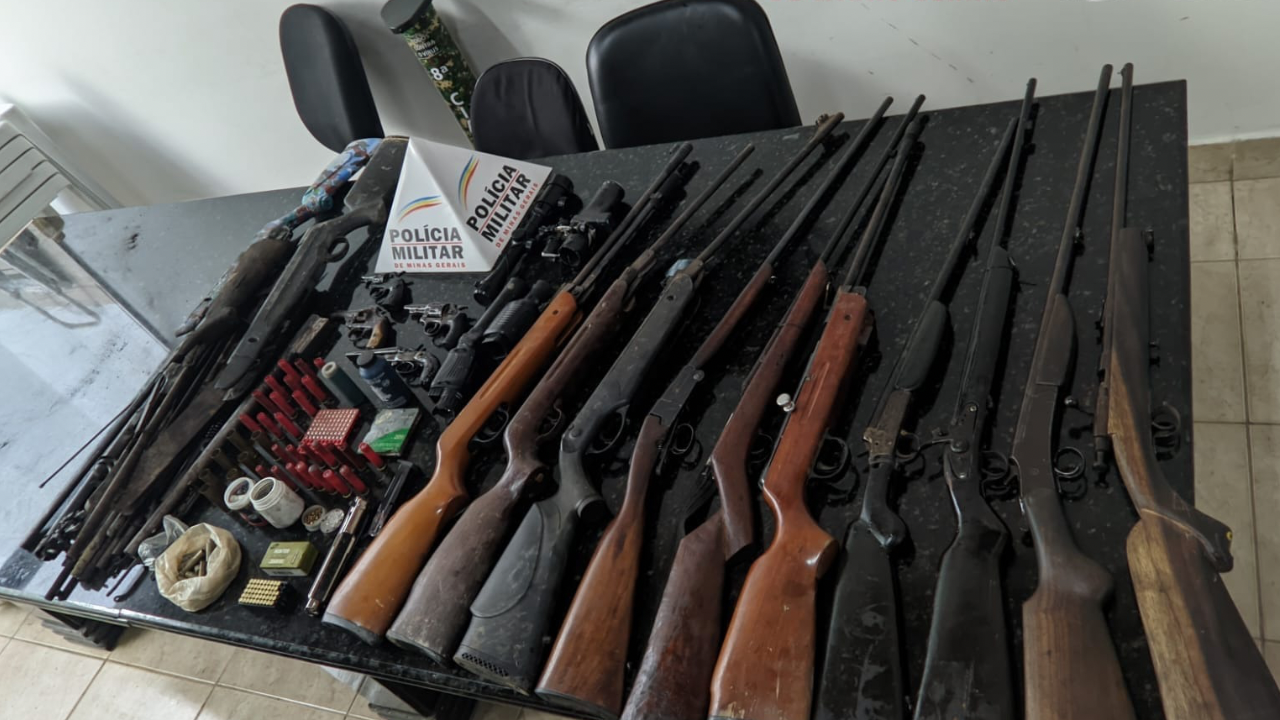 Durante a vistoria, os militares encontraram um fundo falso em um fogão, onde estavam escondidas armas de fogo, peças para conserto e munições.