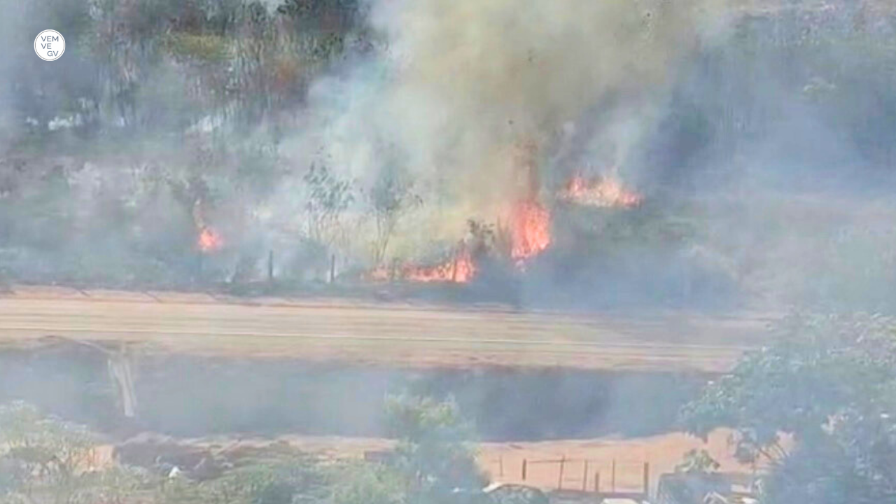 Incêndio às margens da BR-381 quase atinge casas no bairro Turmalina, em Valadares
