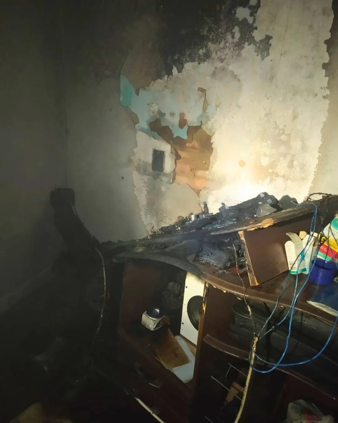 Ao chegar no local, a equipe deparou-se com uma casa de três cômodos e um banheiro, sendo que o fogo havia se concentrado na sala de estar.
