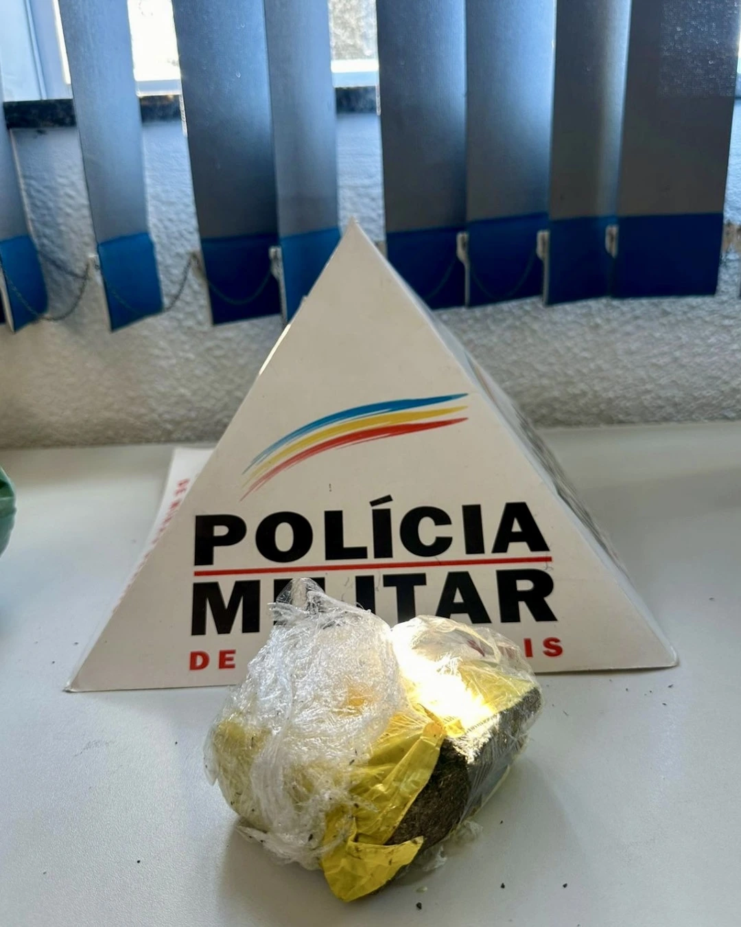 Durante a tentativa de abordagem, o suspeito evadiu por uma área de mata e dispensou meia barra de maconha.