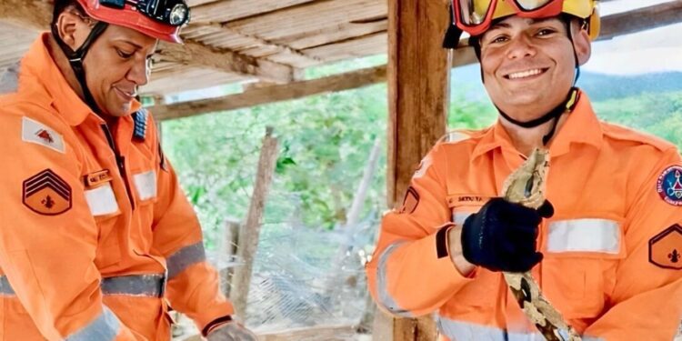 Uma jiboia foi capturada pelo Corpo de Bombeiros na manhã deste sábado ( 14/02 ), no bairro Santa Rita, em Governador Valadares.