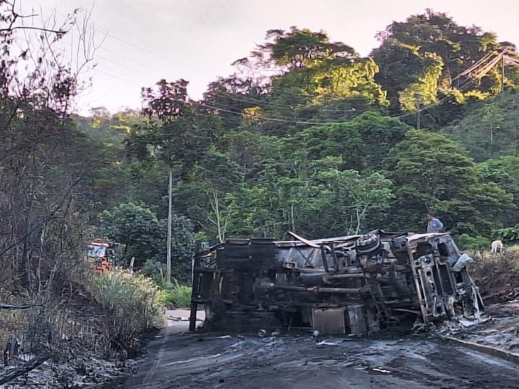 Na manhã dessa quinta-feira ( 28/11 ), um caminhão-tanque carregado com gasolina, etanol e óleo diesel explodiu após tombar na LMG-744, em Virgolândia, no Vale do Rio Doce.
