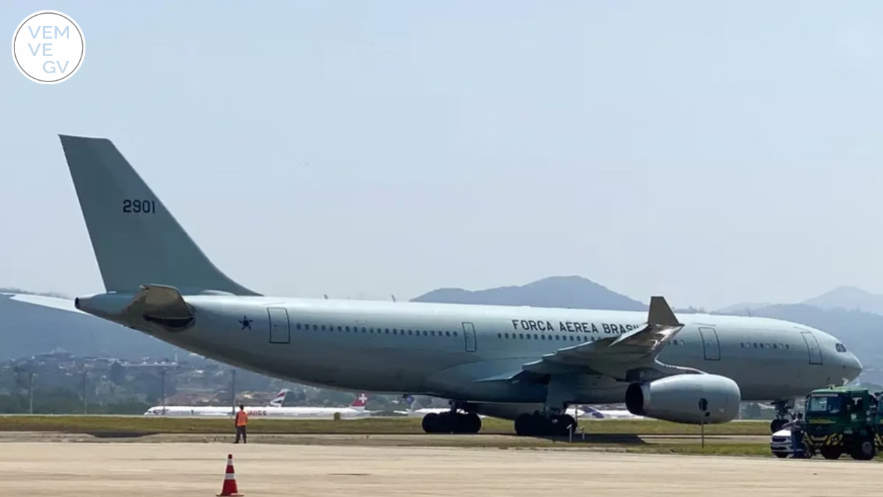 Parte dos passageiros seguirá, em aeronave da Força Aérea Brasileira ( FAB ), para o Aeroporto Internacional de Belo Horizonte, em Confins, onde a chegada está prevista para as 15h.