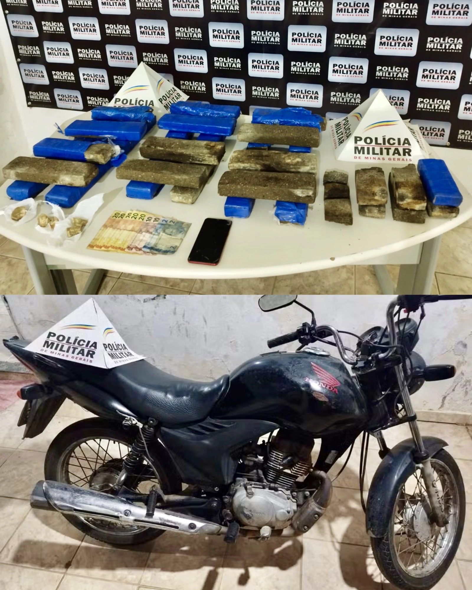 A motocicleta usada pelo suspeito também foi apreendida.