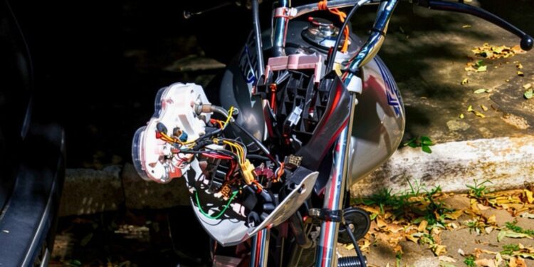 A motocicleta foi apreendida e levada para um pátio credenciado.