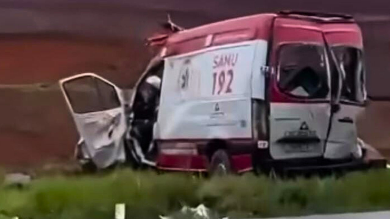 O veículo colidiu de frente com uma carreta, e o motorista da ambulância morreu no local.