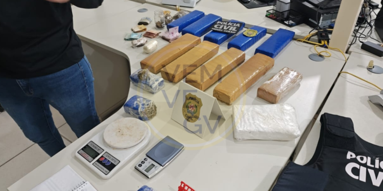 Na residência dele, os policiais encontraram uma grande quantidade de entorpecentes, além de materiais ligados ao tráfico de drogas.