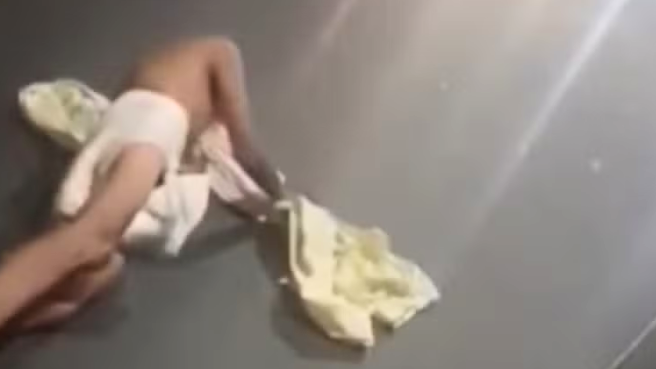 Ele foi contido pela equipe e colocado de volta na ambulância.