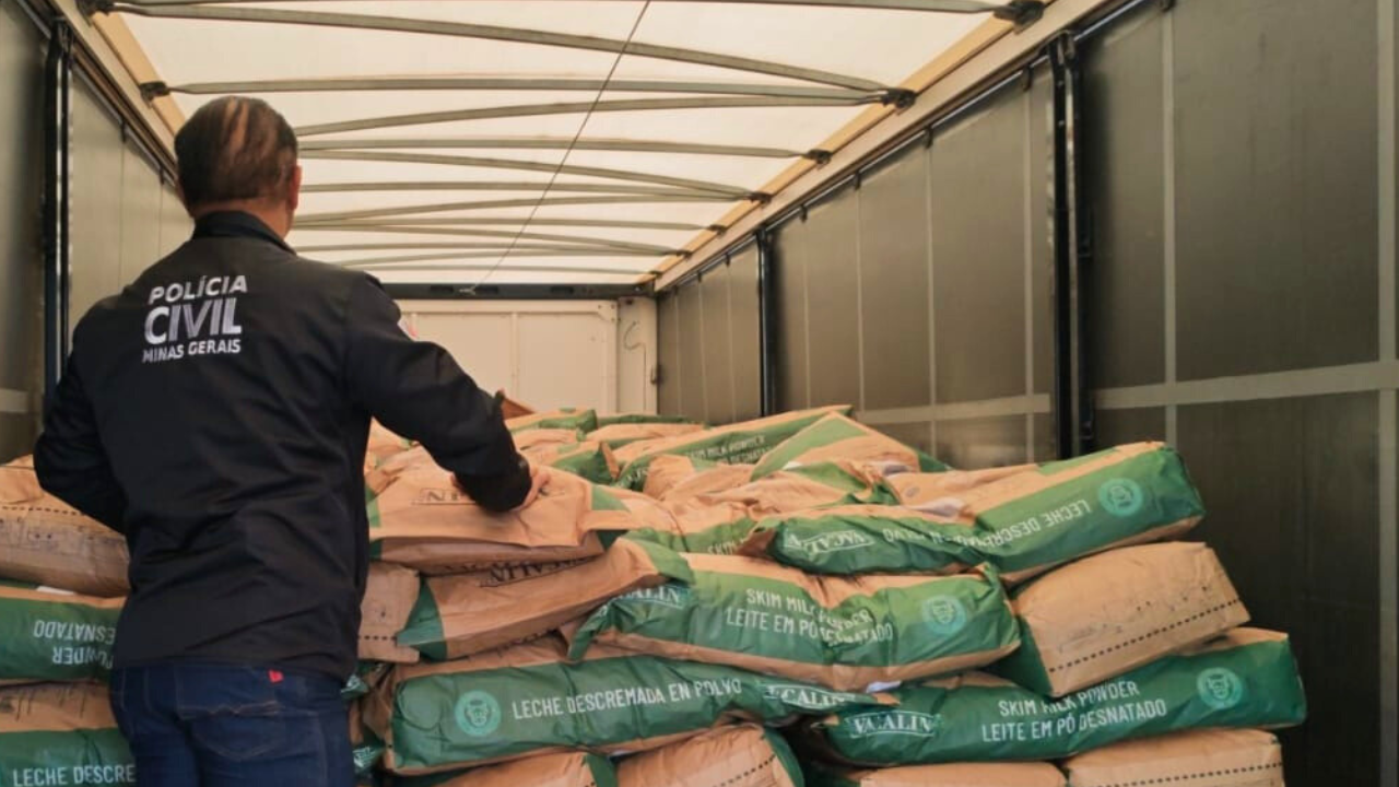 A Polícia Civil de Minas Gerais ( PCMG ) apreendeu mais de 28 toneladas de leite em pó adquiridas por meio de estelionato em Governador Valadares, no Vale do Rio Doce.