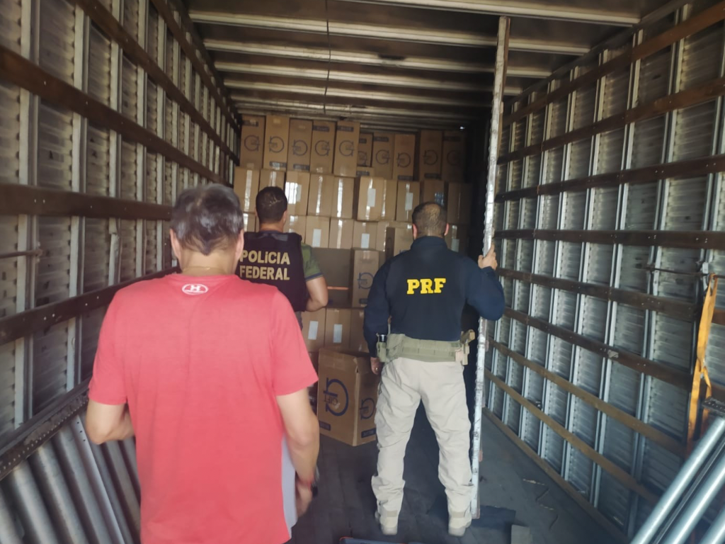 Uma operação conjunta da Polícia Rodoviária Federal ( PRF ) e Polícia Federal ( PF ) apreendeu, nesta quinta-feira ( 05/12 ), um caminhão com 250 caixas de cigarros contrabandeados, totalizando cerca de 125 mil maços, na BR-381, em Governador Valadares ( MG ).
