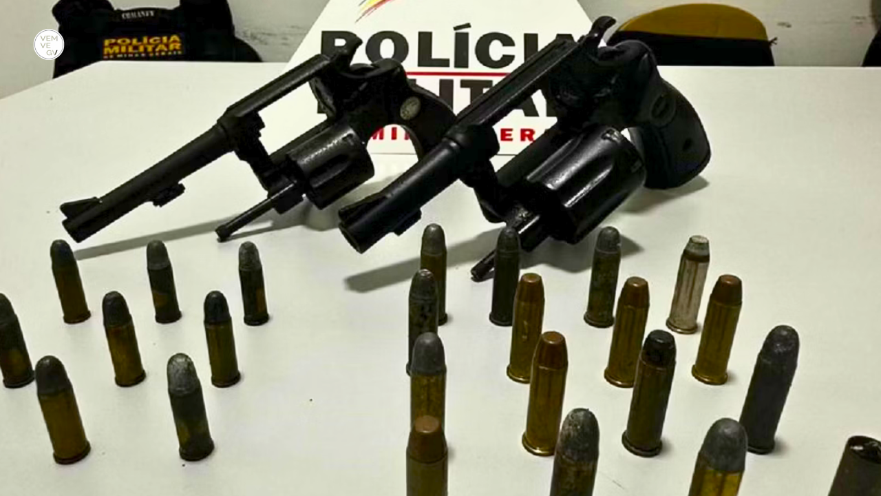 Segundo o registro policial, os moradores autorizaram a entrada e, após mais de três horas de buscas e diálogo com os envolvidos, os policiais localizaram dois revólveres — um calibre 38 e outro calibre 32 — além de 23 munições.