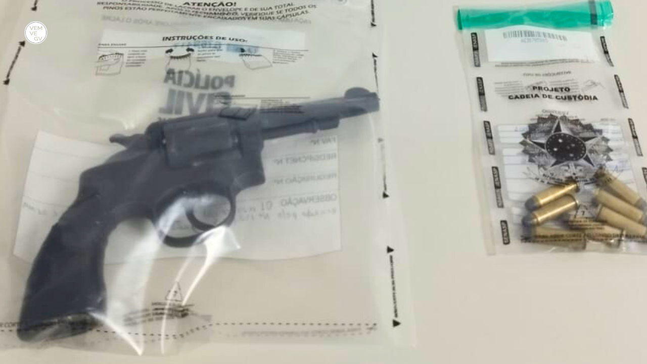 A equipe foi recebida pela mãe do homem, que autorizou a entrada dos policiais na residência. No interior da casa, o revólver e as munições foram localizados e apreendidos.