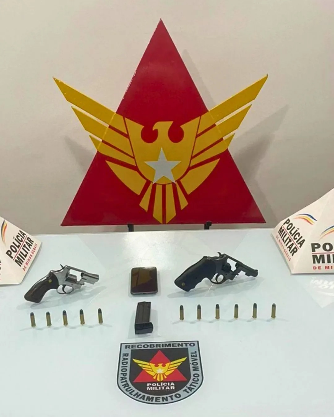 No local, os policiais encontraram um carregador de pistola escondido em uma meia e dois revólveres carregados.