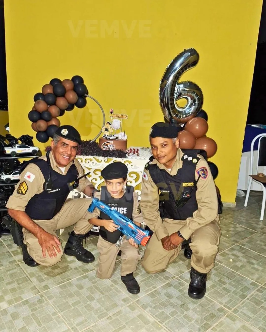 Os pais do pequeno “Sgt Neemias”, Nikolas e Juliane, expressaram sua gratidão. “Vocês da PM fizeram a felicidade do meu filho”, disse o pai.
