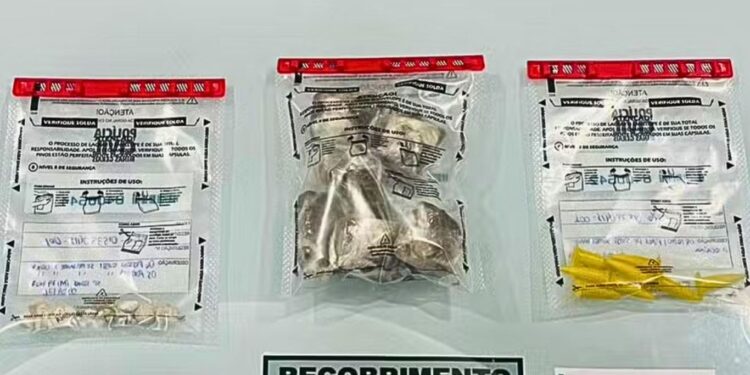 Ao notarem a aproximação da viatura, os homens tentaram se desfazer do material. Um deles jogou uma bolsa, enquanto o outro arremessou objetos dentro de um barco. A movimentação foi percebida pelos policiais, que realizaram a abordagem imediatamente.