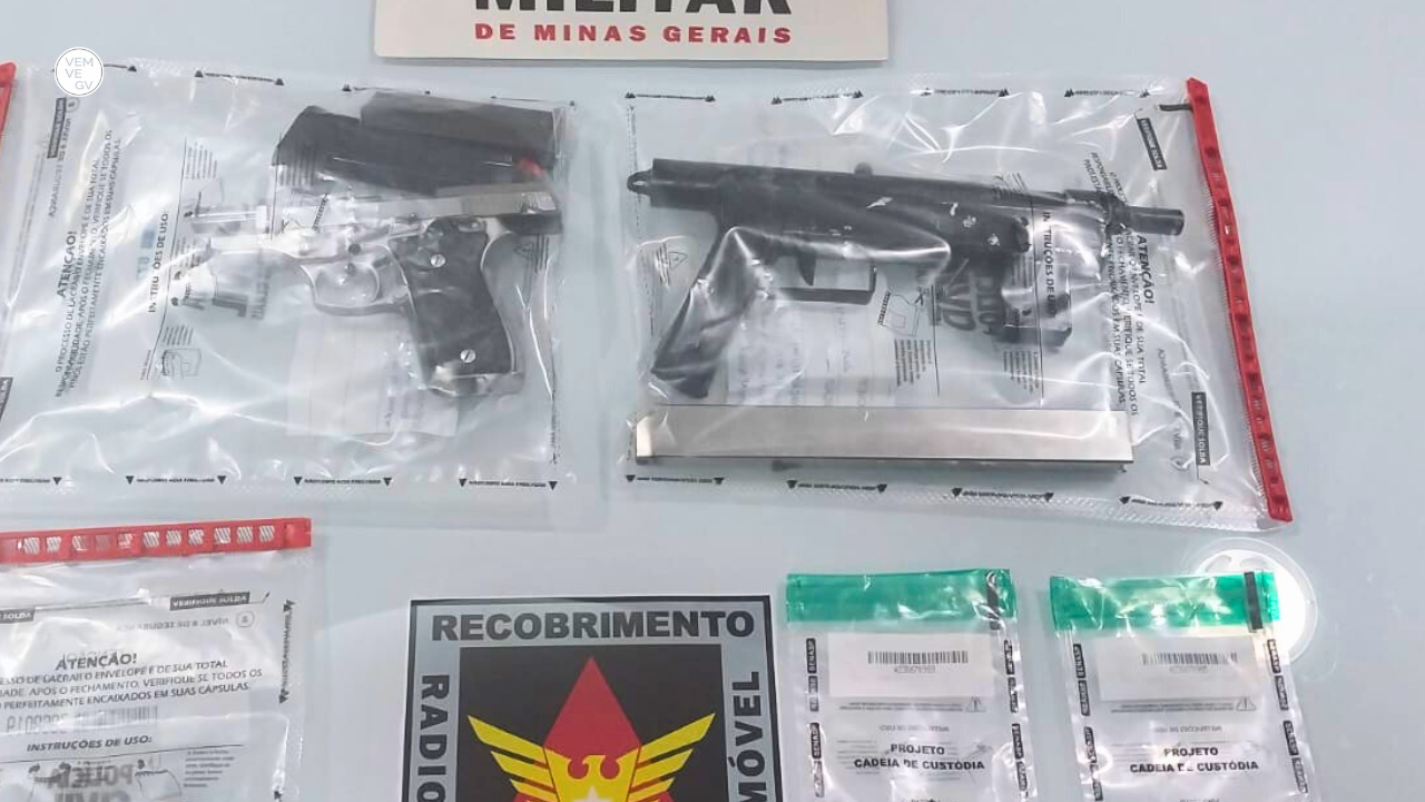 Durante a ação, foram apreendidos uma submetralhadora calibre .380, uma pistola calibre .380, 25 munições do mesmo calibre, 14 pedras de crack e uma balança.