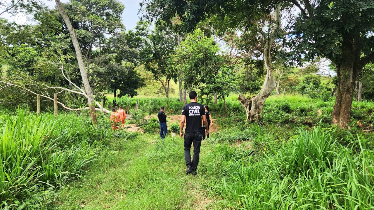 Após deter o suspeito, a Polícia Civil, com apoio do Corpo de Bombeiros, realizou buscas em locais apontados pelas investigações.